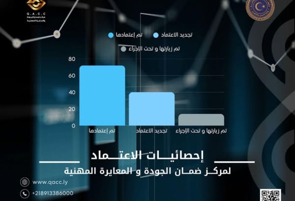 خلال عام 2024، تقدم للمركز عدد 126 مؤسسة تدريبية للحصول على الاعتماد المؤسسي وشهادة ضمان الجودة. حيث اعتمد المركز 72 مؤسسة، وتم تجديد الاعتماد لعدد 40 مؤسسة ومركز تدريبي على مستوى ليبيا، بينما لا تزال 14 مؤسسة تحت الإجراء.