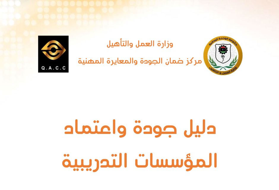 دليل جودة واعتماد المؤسسات التدريبيةأصدر مركز ضمان الجودة والمعايرة المهنية بوزارة العمل والتأهيل (دليل جودة واعتماد المؤسسات التدريبية) والذي يُوضح المعايير والشروط والمتطلبات الخاصة باعتماد المؤسسات والبرامج التدريبية، ويهدف إلى النهوض بمستوى التدريب من خلال تطبيق معايير الجودة والاعتماد وضمان جودة مخرجات المؤسسات التدريبية.طالعوا دليل (جودة واعتماد المؤسسات التدريبية) عبر الموقع الرسمي لمركز ضمان الجودة والمعايرة المهنية www.qacc.gov.ly أو عبر تحميل الدليل بصيغة PDF